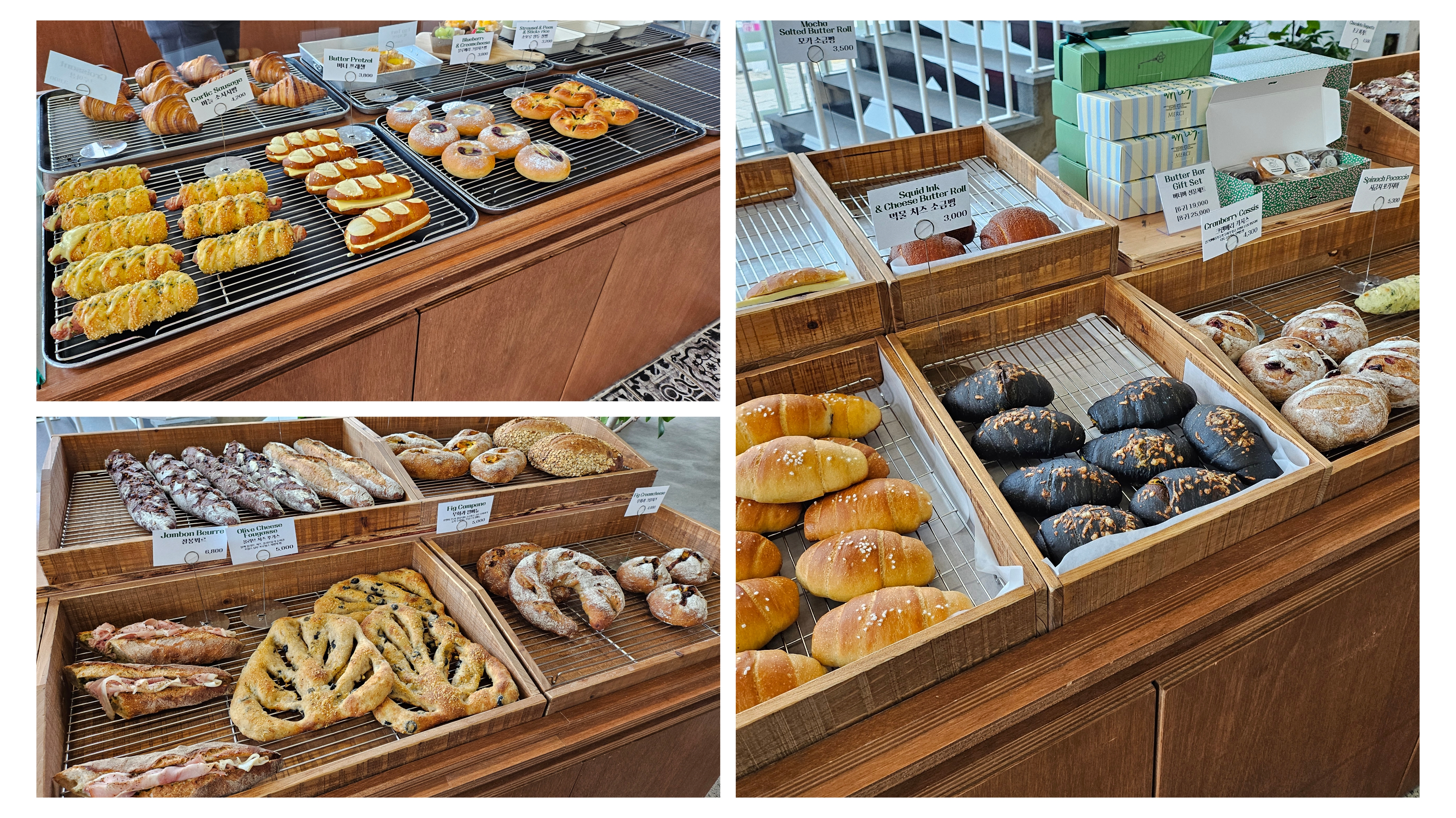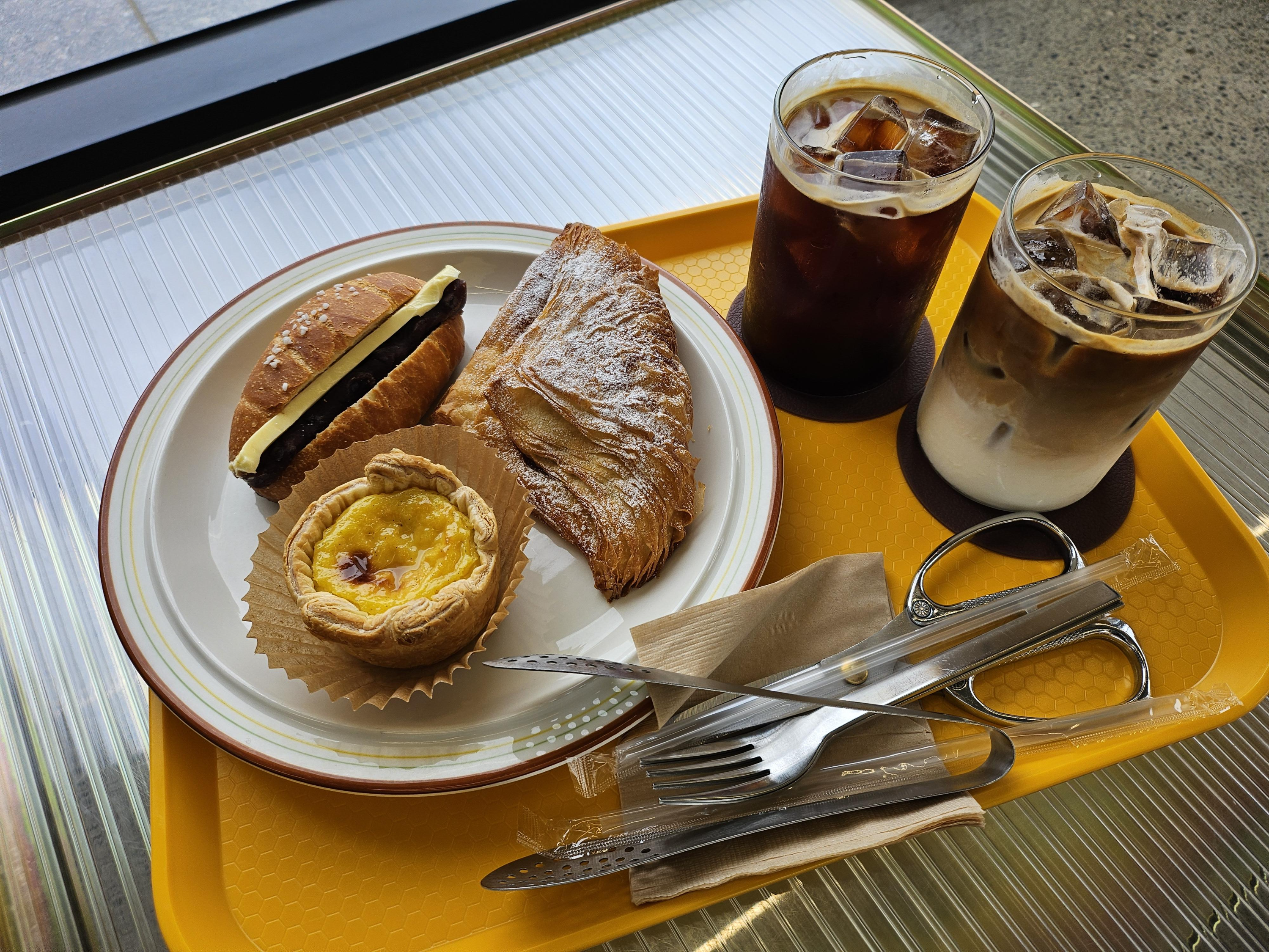 저희는 앙버터소금빵과, 에그타르트, 그리고 애플파이를 주문했어요.