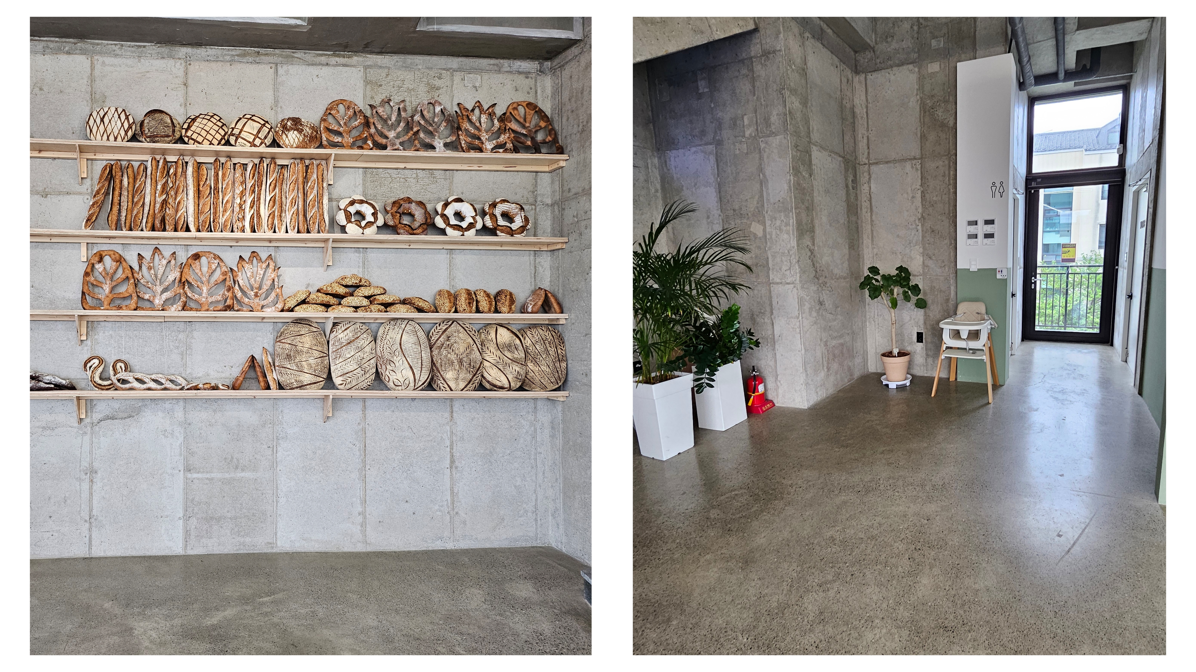 모형인지 아닌지 만져보지는 않았지만 빵으로 벽면을 장식해놓고 산뜻한 인테리어였네요^^