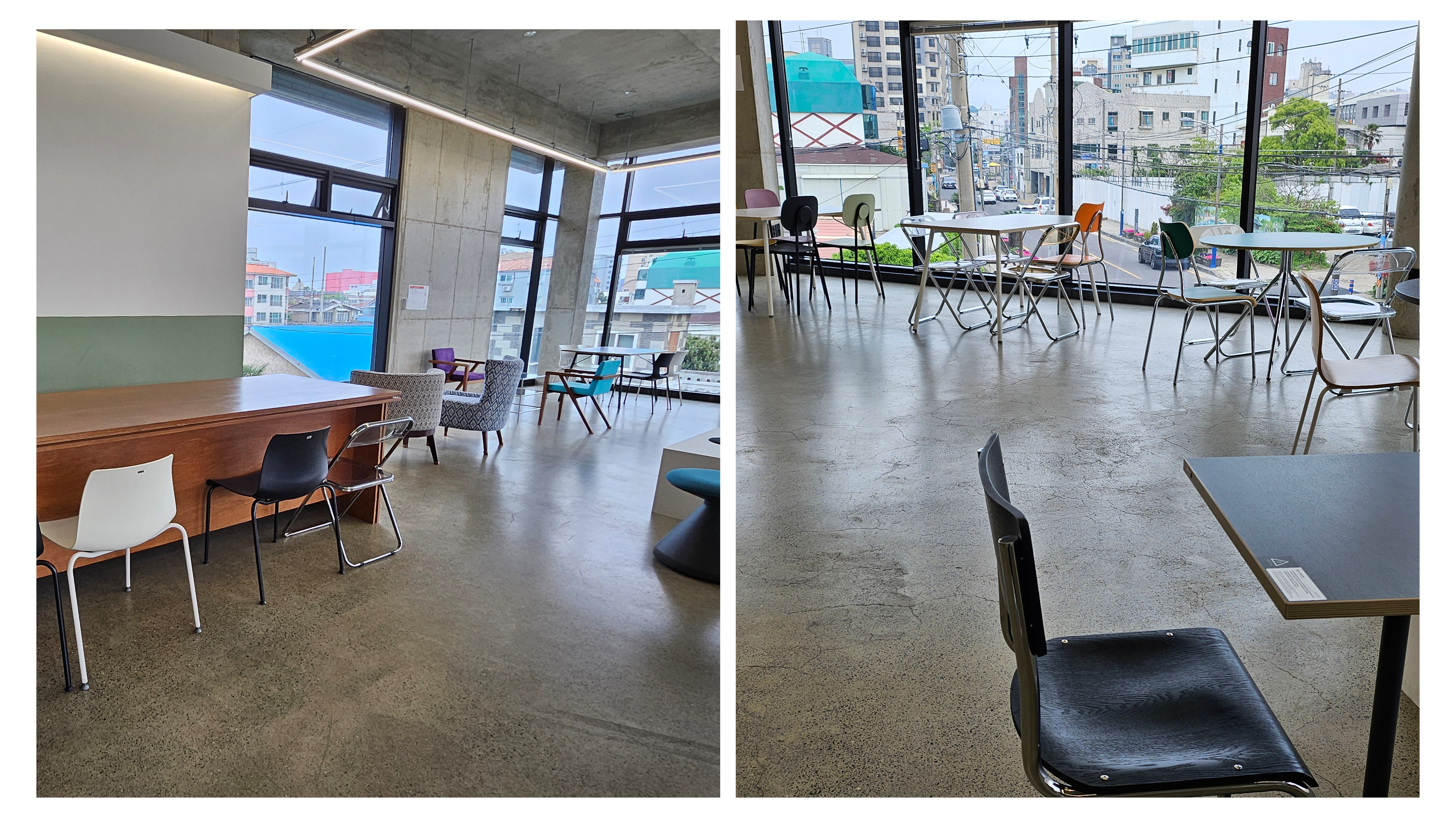 모던하면서도 아주 넓은, 그리고 통일되지 않은 의자들도 너무 마음에 들었어요.