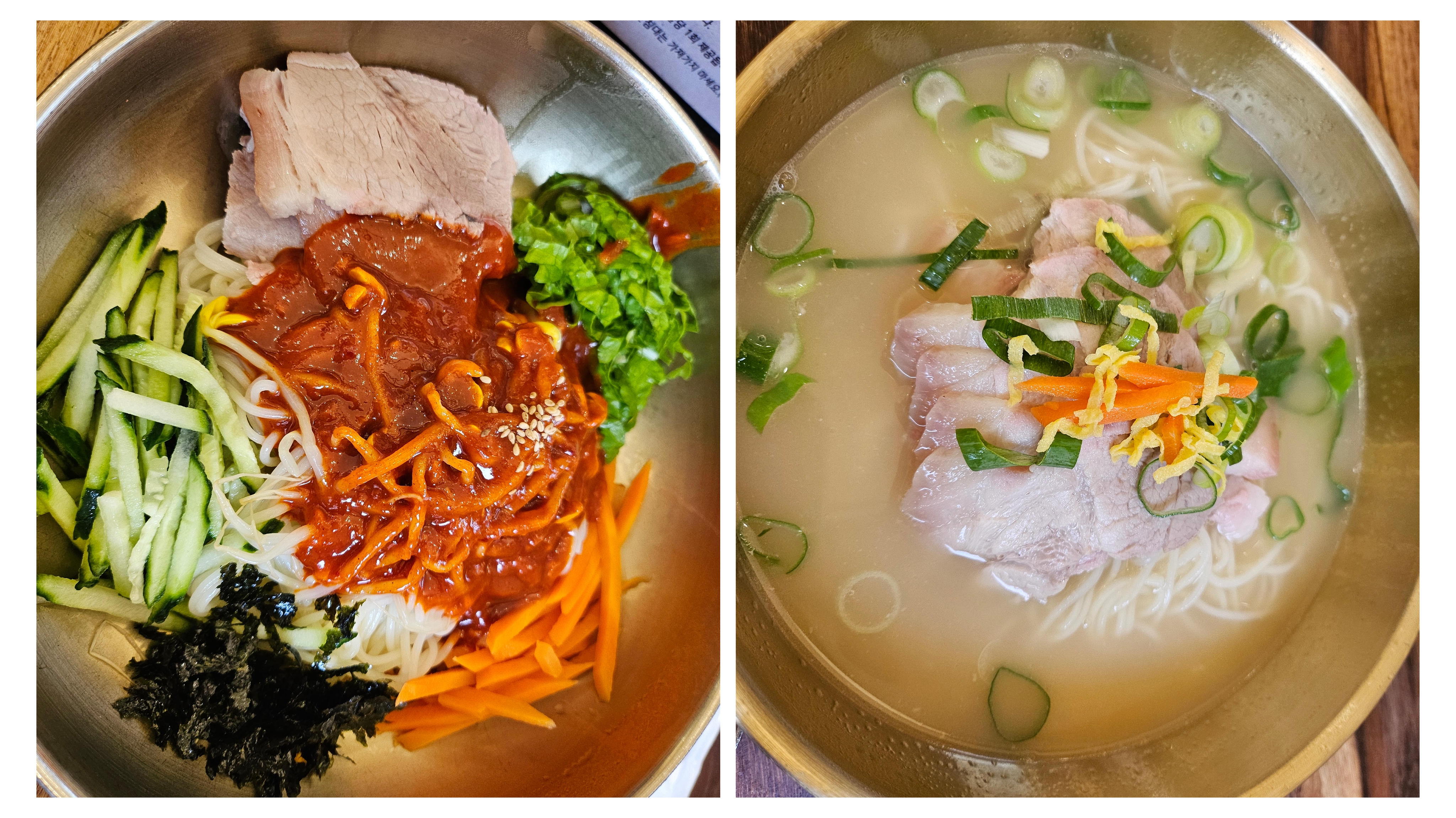 저희가 주문한 비빔국수와 고기국수가 나왔어요.