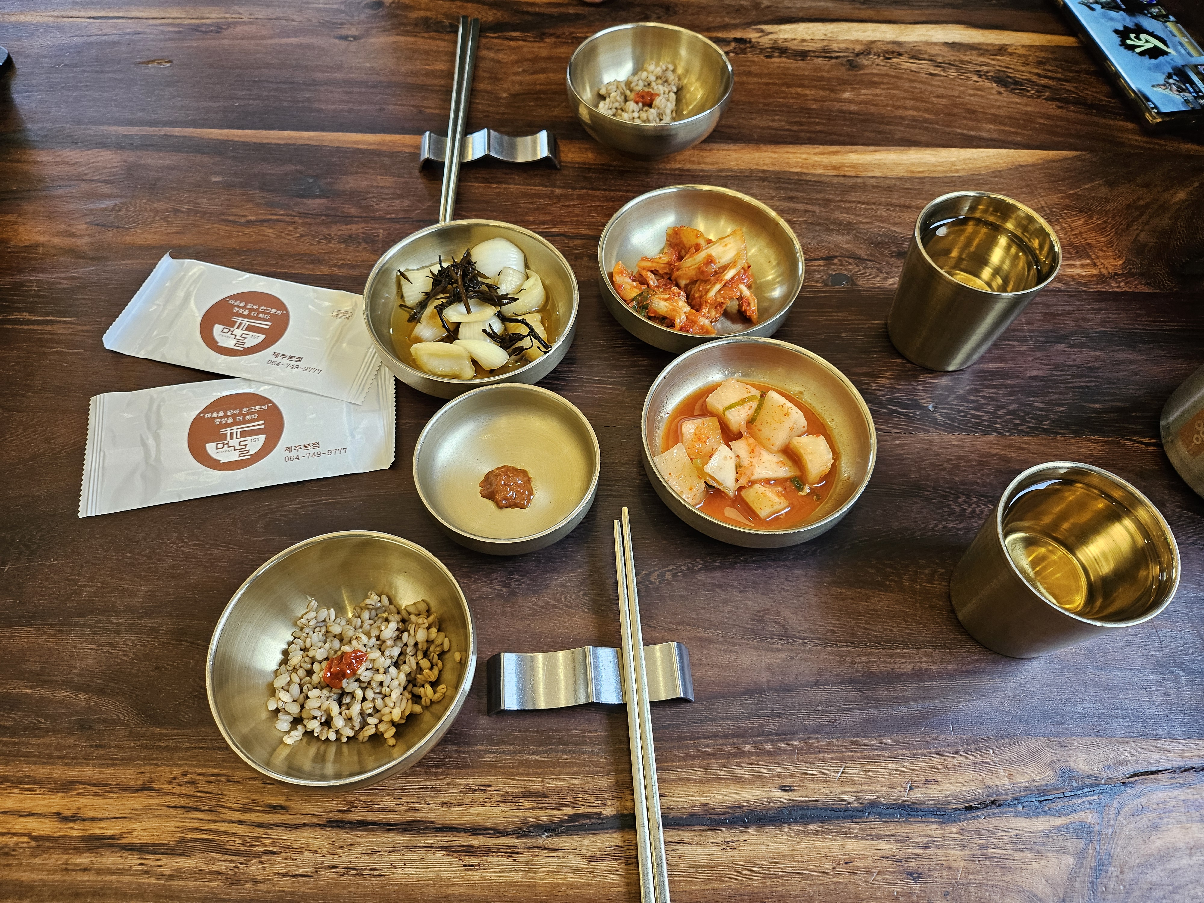 제주도 일반 국수집과는 다르게 이곳에서는 한방국밥과 뿔소라문어무침 그리고 흑돼지육전도 판매를 하고 있었어요.