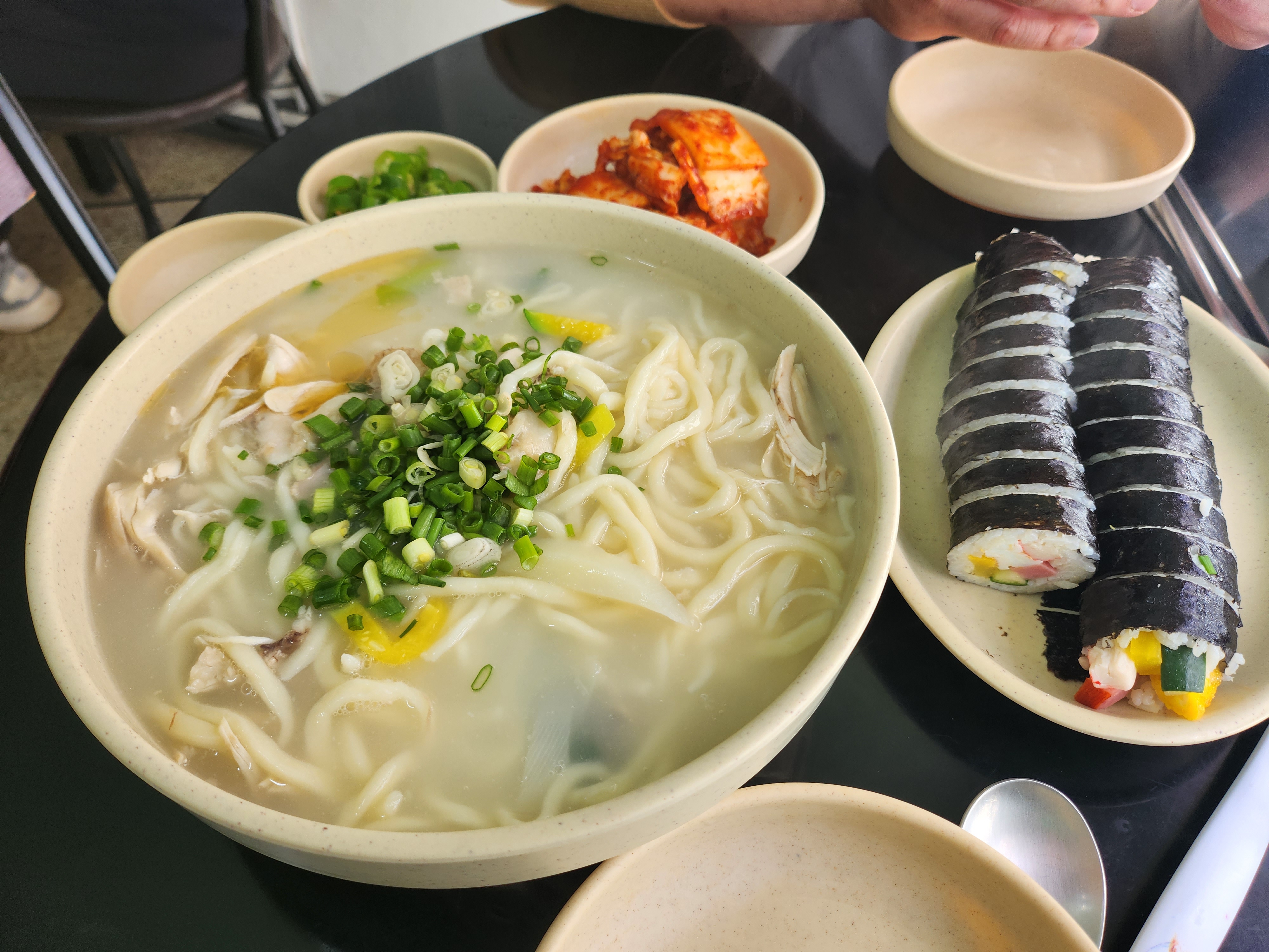 닭칼국수에 김치를 얹어 후루룩 먹으면 크~으!!!!