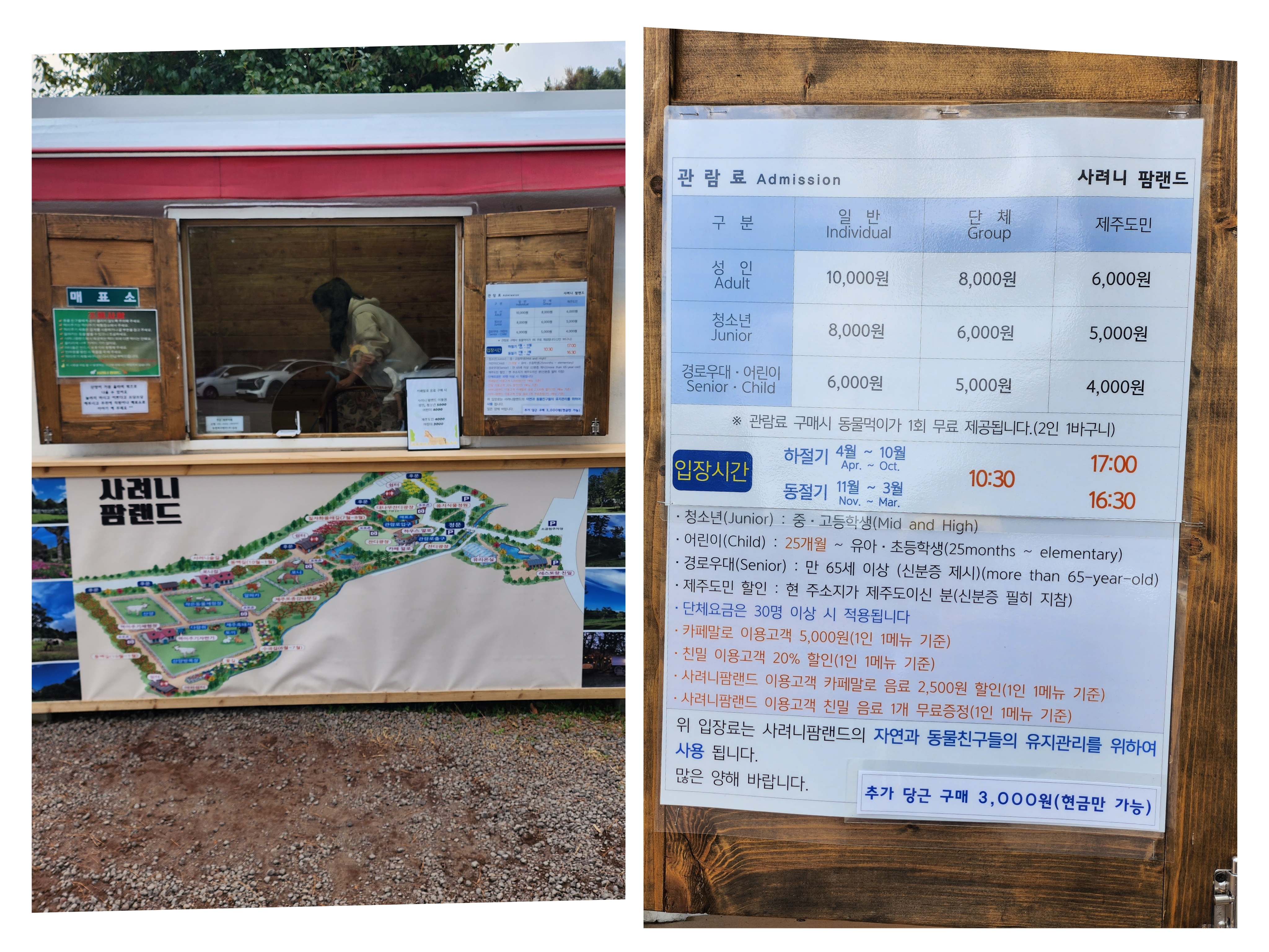 (사려니 팜랜드 입장권을 구매하시면 카페말로 이용 시 음료 할인권을 주네요. 반대로 카페요금에는 목장입장료가 포함되어 있으니 참고하시고 방문하시기 바랍니다.)